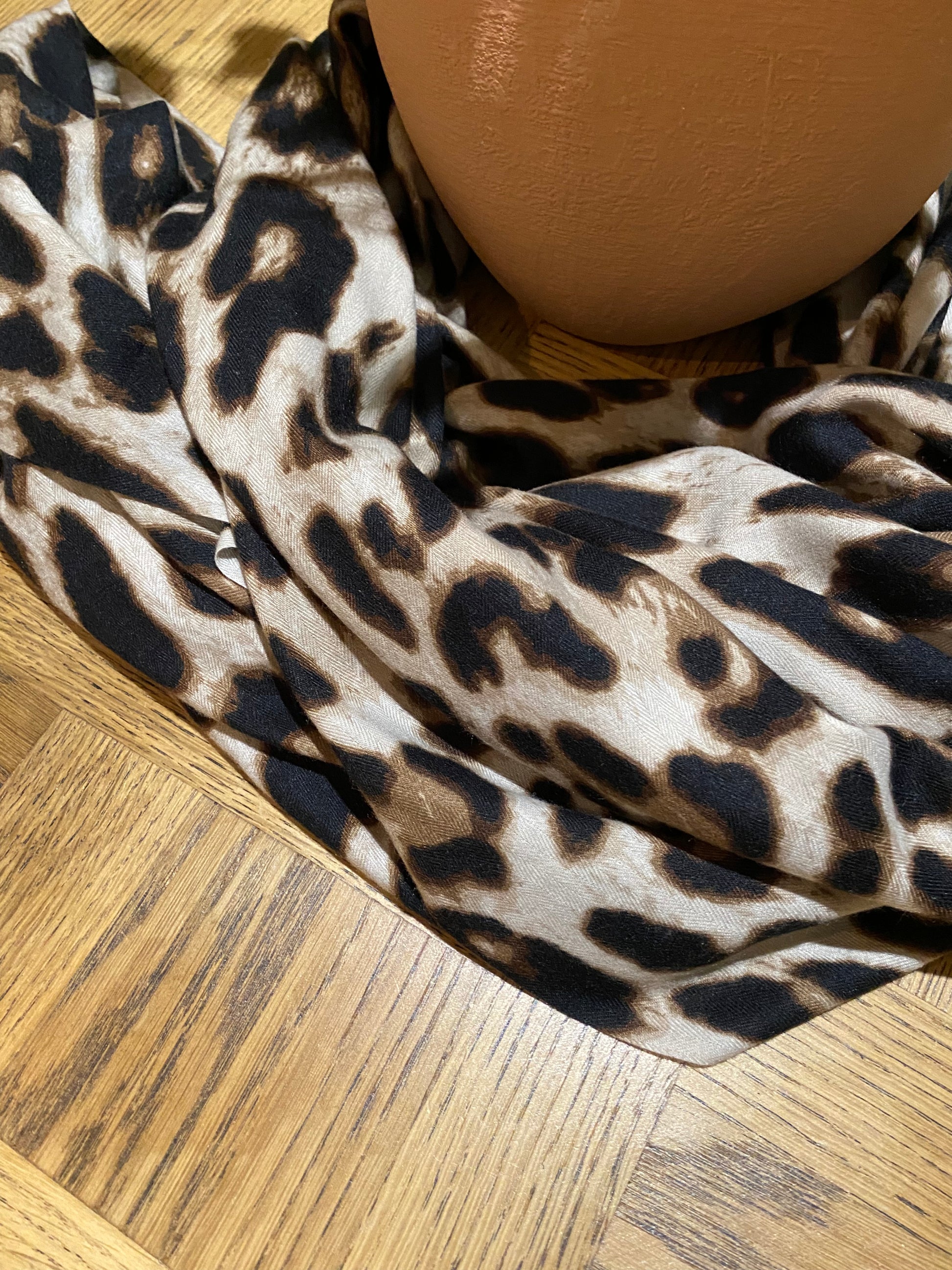 Echarpe léopard, mélange de laine 20% et de viscose 80% toute douce & chaude