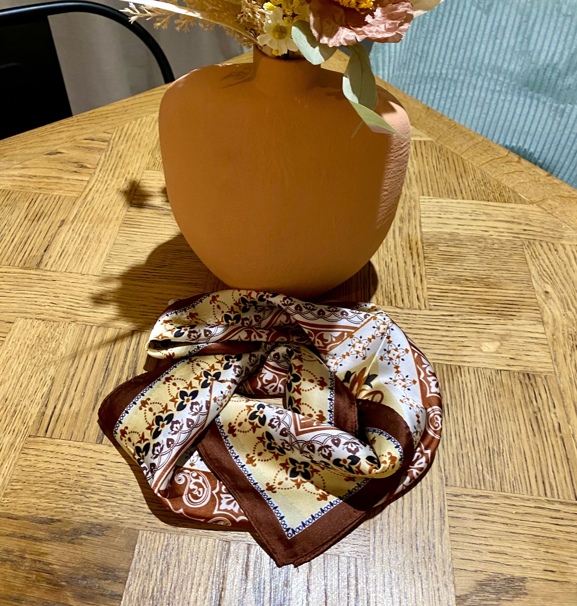 Foulard en soie imprimé 70x70cm, l'accessoire de mode chic à avoir dans son dressing.