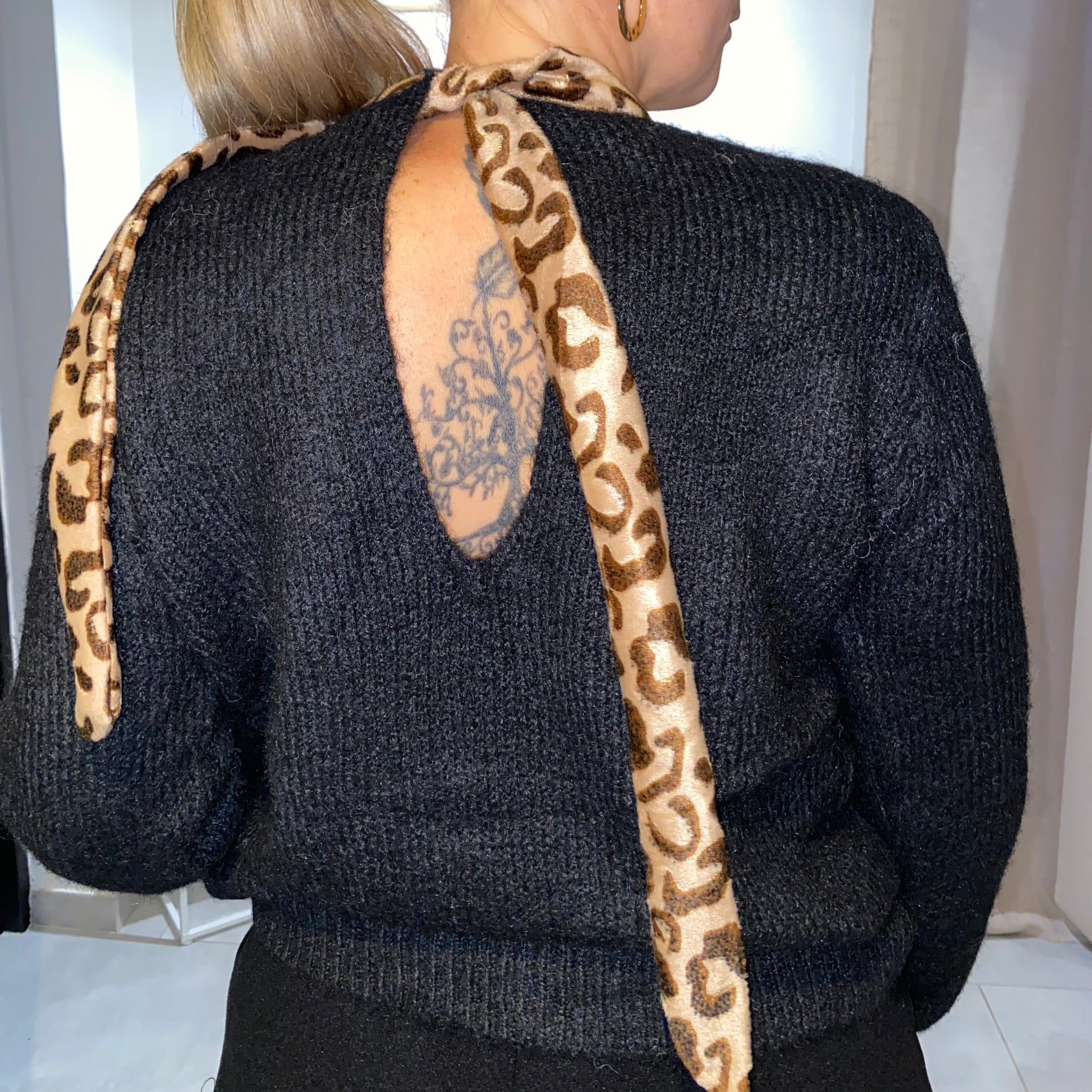 Adoptez un look à la fois cosy et tendance avec ce pull à manches longues. Le col et les poignets sont décorés de motifs léopard, ajoutant une touche audacieuse à ce design simple mais élégant.